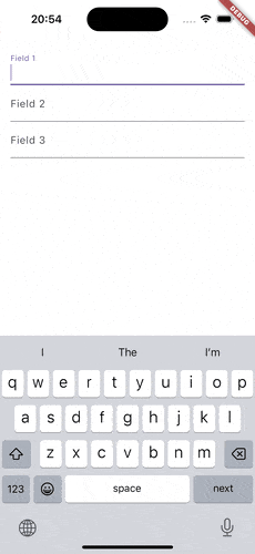 문제: 사용자가 가상 키보드의 "다음" 버튼을 눌렀을 때 다음 필드로 포커스가 이동하지 않음